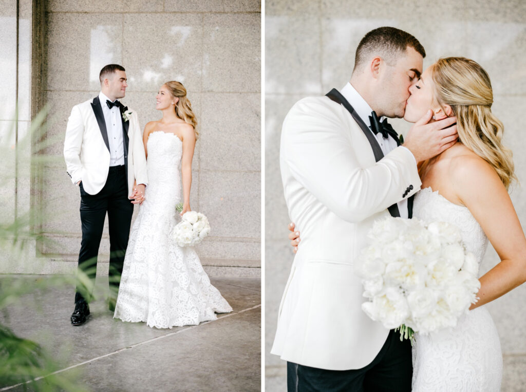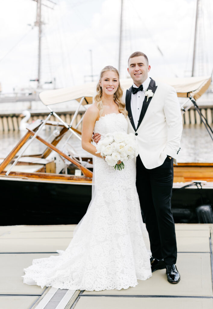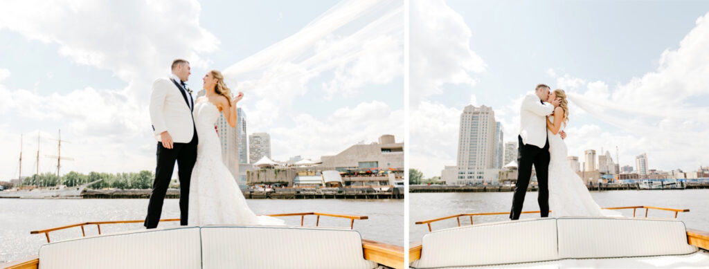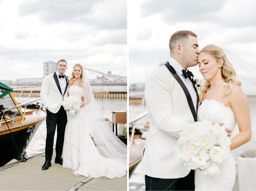 Just outside the Hilton at Penn’s Landing, Olivia and Conor shared their first look on a boat dock along the Delaware River. With the breeze lifting her veil and the water stretching behind them, it was the perfect blend of tender and cinematic.