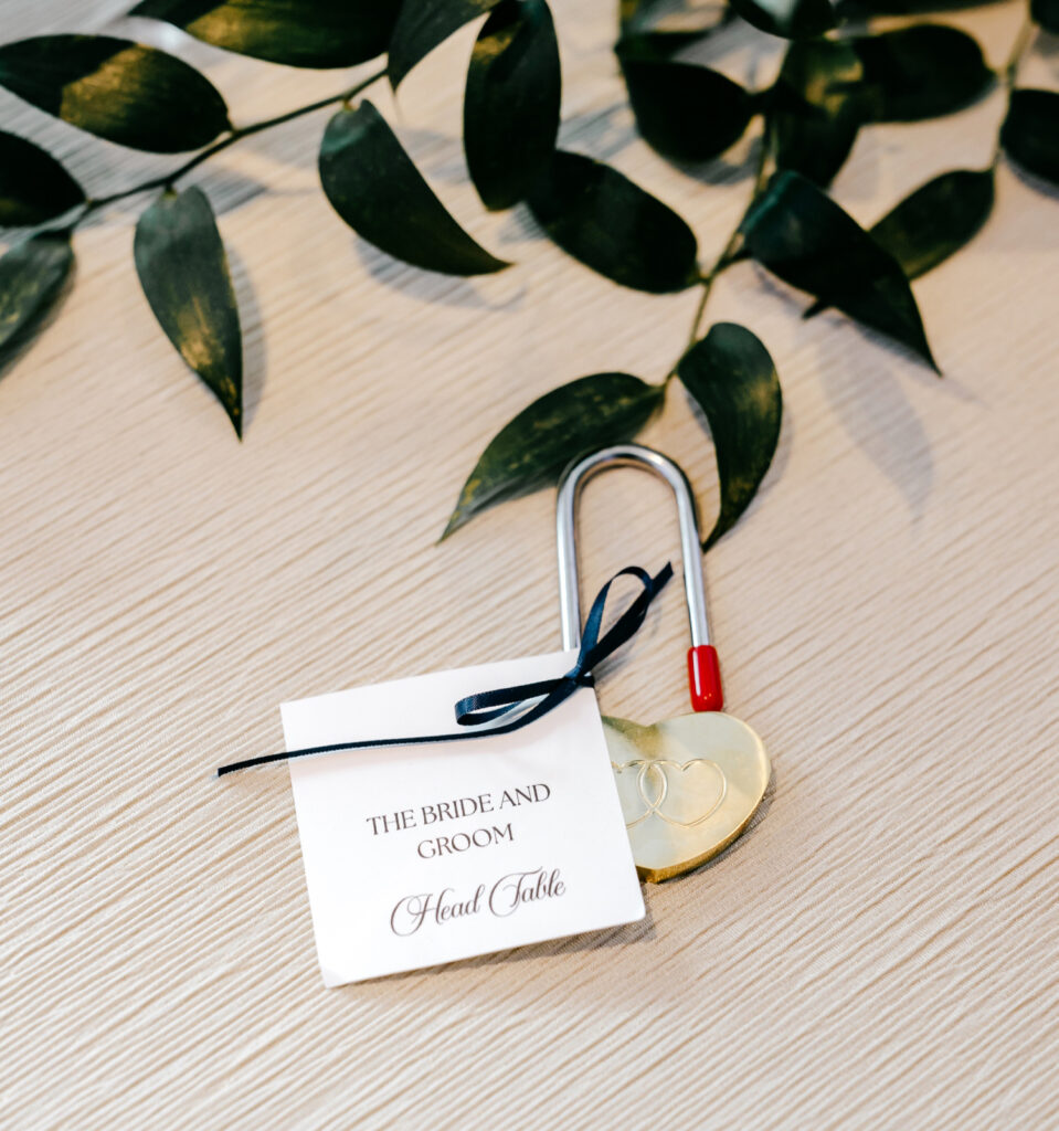 As guests entered the ceremony space, they were greeted by one of the most thoughtful details of the day: a seating display made of heart-shaped love locks, inspired by the iconic locks fastened to bridges and fences throughout France. It was the kind of detail that felt deeply personal and quietly poetic, the sort that makes you wonder if it was a subtle nod to their proposal (and honestly, it wouldn’t surprise me).