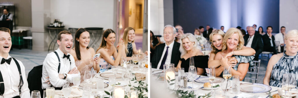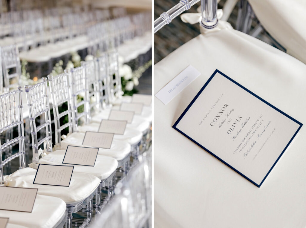 Olivia’s details were classic with a fresh edge. A classic navy-and-ivory invitation suite by Papery of Philly, soft white blooms, and a pearl-studded clutch that felt like a modern heirloom. MU8 Bridal Beauty created a soft, polished look that held beautifully through every outfit change and every dance floor moment. When it was time to get dressed, the palette stayed beautifully cohesive—the bridesmaids in deep navy gowns, and Olivia’s mom in her own distinct shade of blue, subtly set apart in a way that felt elegant and meaningful.