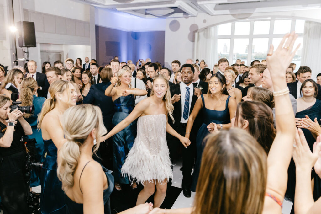 Olivia and Conor’s wedding began with coastal calm and classic style, then shifted into sparkling, high-energy glamour as the sun went down. Hosted at Hilton at Penn’s Landing along Philadelphia’s waterfront, the entire celebration felt polished, personal, and beautifully paced—thanks in large part to Olive Street Events, who orchestrated the day and brought the full design vision to life, from nautical-inspired details to a disco-ball reception glow.