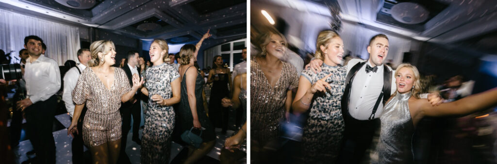 While many brides choose to slip into a party dress for the later part of the reception, Olivia took it one step further by inviting her bridesmaids to change right along with her. Each stepped into a sparkly sequin dress, every look a unique interpretation of the same idea. Mirroring the disco balls overhead, the sequins caught the light as they moved—glimmering and reflecting across the dance floor and perfectly amplifying the high-glam energy of the night.
