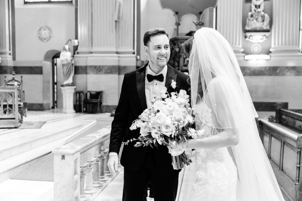 Alexa and Jack were married at St. Peter’s Church, an ornate and richly detailed space filled with color, history, and light. The setting brought tradition and beauty together effortlessly, framing the ceremony in a way that felt both reverent and warm. Surrounded by their families and closest friends, the ceremony unfolded with a sense of sincerity and calm that grounded the day. When they walked back down the aisle together—beaming, joyful, and fully present—it felt like a natural release of everything that had been building, setting the tone for the celebration still to come.