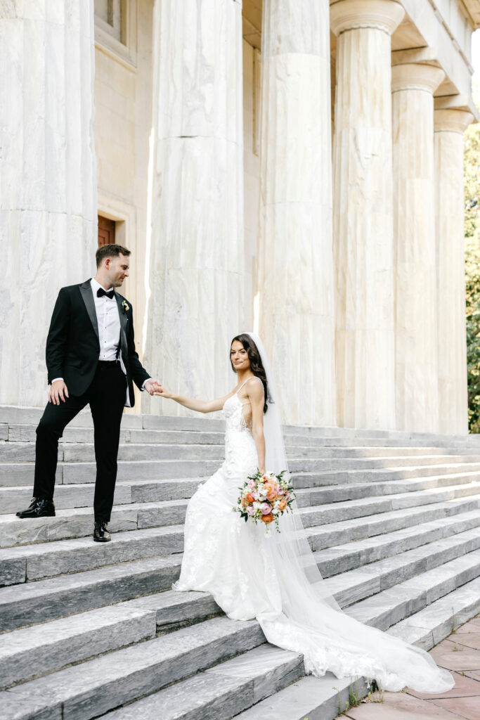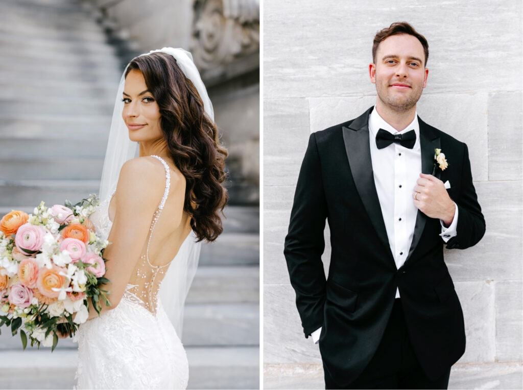 Alexa was so radiant and elegant! We focused on portraits that felt natural and unforced, giving her and Jack space to move, laugh, and settle into the moment together. The contrast between her softness and the grandeur of the space made those images especially striking.