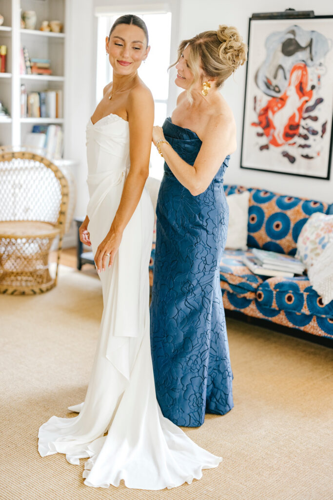 The invitations, featuring Coastal Toile by Minted Weddings, set the tone beautifully. Paired with Kat’s sleek low bun and understated bridal look, everything felt polished and unfussy. Hair and makeup by Aleksandra Ambrozy complemented her natural features perfectly, allowing her own presence to lead rather than the styling itself.