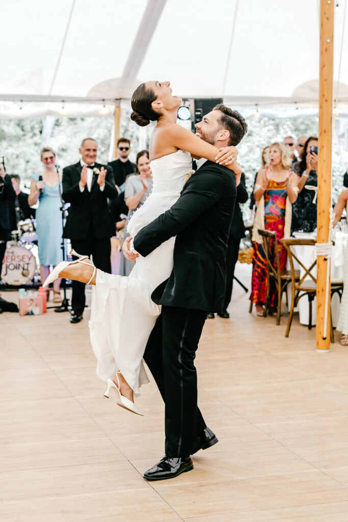 As the evening unfolded beneath the sail tent, the energy lifted naturally. Music filled the space, guests spilled onto the dance floor, and the celebration took on an effortless momentum. One of my favorite moments came near the end of the night, when John scooped Kat up and spun her around, the two of them laughing and completely caught up in the moment. It felt spontaneous, joyful, and an ending that mirrored the spirit of the day: relaxed, expressive, and full of genuine connection.